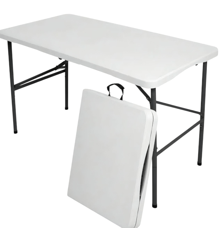Sturdy 4-foot folding tables perfect for events, parties, meetings, or extra workspace. These compact, portable tables offer a durable flat surface that’s easy to set up and break down, making them ideal for indoor or outdoor use. Lightweight enough for one person to carry yet stable enough for serving food, displaying items, or seating two to four guests comfortably. Simple, practical, and convenient—great when you need reliable table space without the bulk.