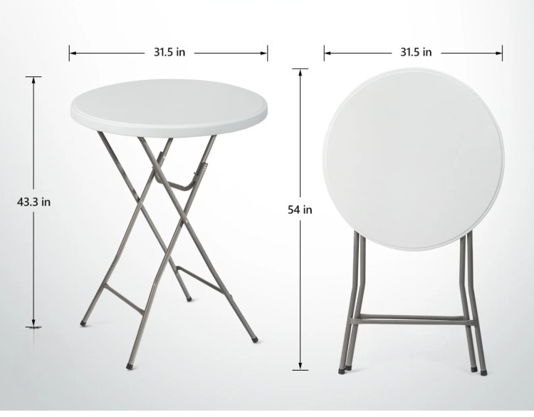 A compact, stylish folding table with a 32" diameter top, paired with four matching folding chairs — a perfect rental for gatherings where guests mingle, sip, and socialize. The tabletop offers enough room for drinks, small plates, and decorative accents, while the included chairs provide comfortable, convenient seating that tucks away neatly when the event ends. Because both table and chairs fold, setup and takedown are quick and easy, and they’re ideal for indoor or outdoor use at parties, receptions, trade shows, or corporate mixers. Durable and portable, this set helps create a polished, functional entertaining space without taking up excess room.